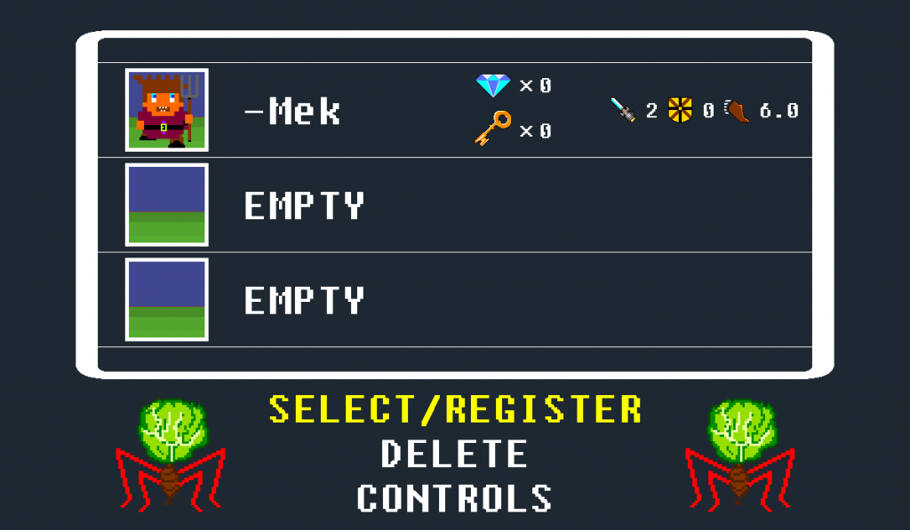 - Character select screen (create up to 3 save files)